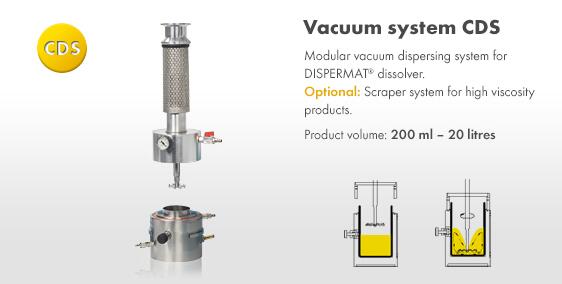 CDS真空系統(tǒng)可選單壁杯在真空密封條件下進行分散。先將單壁杯放入單壁式或雙壁夾套式容杯的杯座內(nèi)并鎖緊;隨后加入液體和粉體等材料;然后降下玻璃杯蓋使之密封;即可開始在真空條件下分散。