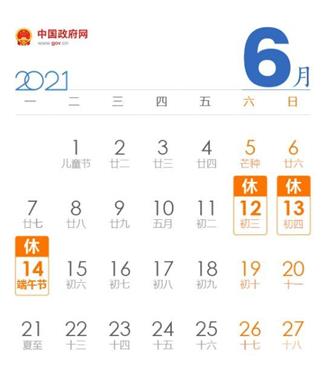 2021年翁開爾集團(tuán)端午放假通知:據(jù)國務(wù)院辦公廳通知精神,結(jié)合公司實(shí)際情況,現(xiàn)將2021年端午節(jié)放假安排通知如下: 6月12日(星期六)至6月14日(星期一)放假,共3天。