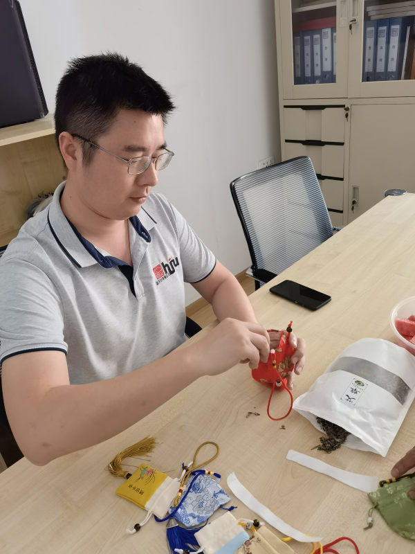 同時(shí),翁開爾提前過端午,舉辦“濃情端午”活動——吃粽子、包香囊、繡香包,各地公司或辦事處熱烈參與。