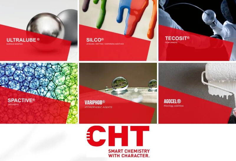 CHT集團總部位于德國,是一家特殊化學品研發(fā)、生產(chǎn)、銷售的跨國化學品公司,為油漆和涂料行業(yè)提供一系列性能優(yōu)異的添加劑。自行研發(fā)生產(chǎn)包括消泡劑、防水劑、流變改善劑、流平劑和潤濕劑在內(nèi)的高性能添加劑,促使油漆涂料行業(yè)從溶劑型向水性系統(tǒng)更輕松進行改變。