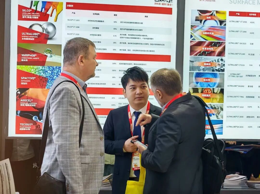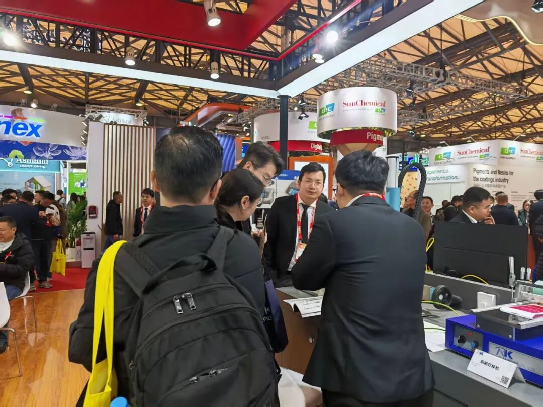 展會(huì)第一天,佛山翁開爾小伙伴為來訪客戶詳細(xì)介紹了產(chǎn)品性能與應(yīng)用場(chǎng)景,現(xiàn)場(chǎng)演示設(shè)備操作,并就實(shí)際生產(chǎn)中的具體問題進(jìn)行了針對(duì)性解答,與每一位來訪客戶共同探討涂料行業(yè)的相關(guān)技術(shù)問題。