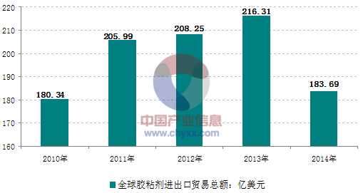 2010-2014年全球膠粘劑進(jìn)出口貿(mào)易金額走勢(shì)圖