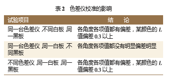 色差儀的校準(zhǔn)分為白板和黑板 2 個部分。針對校準(zhǔn)過程中不同色差儀配置的白板和黑板能否混用,是 否影響色差儀測量的數(shù)值,我們做了一組試驗:使用 2 臺色差儀及其配置的 2 套白板、黑板,采用不同組合的 校準(zhǔn)方式,對某顏色的色板進(jìn)行色差測量,得出結(jié)果如 表 2 所列。