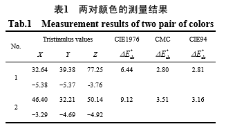 色差是樣品質(zhì)量檢測與評定的一個重要指標(biāo),由 于色差公式選擇的不同,色差值也可能出現(xiàn)很大的不 同。例如,表 1 列出了兩對顏色分別用 3 種色差公式 測量的結(jié)果,可以看出,使用不同的色差公式測量的 色差結(jié)果差別很大,很有可能給測試帶來誤判。因而 在測量色差時,色差公式的選擇同樣也要重視。