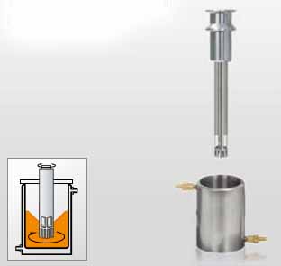 CDS真空系統(tǒng)可選單壁杯在真空密封條件下進(jìn)行分散。先將單壁杯放入單 壁式或雙壁夾套式容杯的杯座內(nèi)并鎖緊;隨后加入液體和粉體等材料;然 后降下玻璃杯蓋使之密封;即可開始在真空條件下分散。