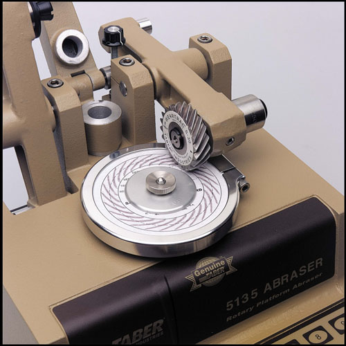 盡管一個簡單的測試的出現(xiàn),Taber 磨耗機涉及到一個復(fù)雜的各關(guān)鍵部件的相互作用。一個元素的公差條件可能會導(dǎo)致測試結(jié)果的顯著差異。例如,研磨輪的定位不當(dāng)可導(dǎo)致每輪磨損不同的路徑從其互補輪在樣品以及其他機器上的輪子。路徑表面積相差為20%,面積由車輪磨損盡可能多的樣品可以少于總磨損區(qū),樣品50%!
