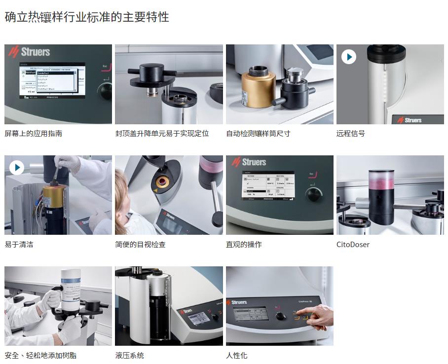 司特爾CitoPress 是一款功能強(qiáng)大的熱鑲樣機(jī)(鑲嵌機(jī)),可提供高速度和最高的人性化,實(shí)現(xiàn)更快周轉(zhuǎn)和提高生產(chǎn)能力。可選的自動(dòng)加料系統(tǒng)可加入預(yù)先設(shè)定的鑲樣樹脂量,縮短鑲樣時(shí)間。用戶界面中包含一個(gè)說明性的“熱鑲樣應(yīng)用指南”屏幕,有助于很大程度地減少錯(cuò)誤。
