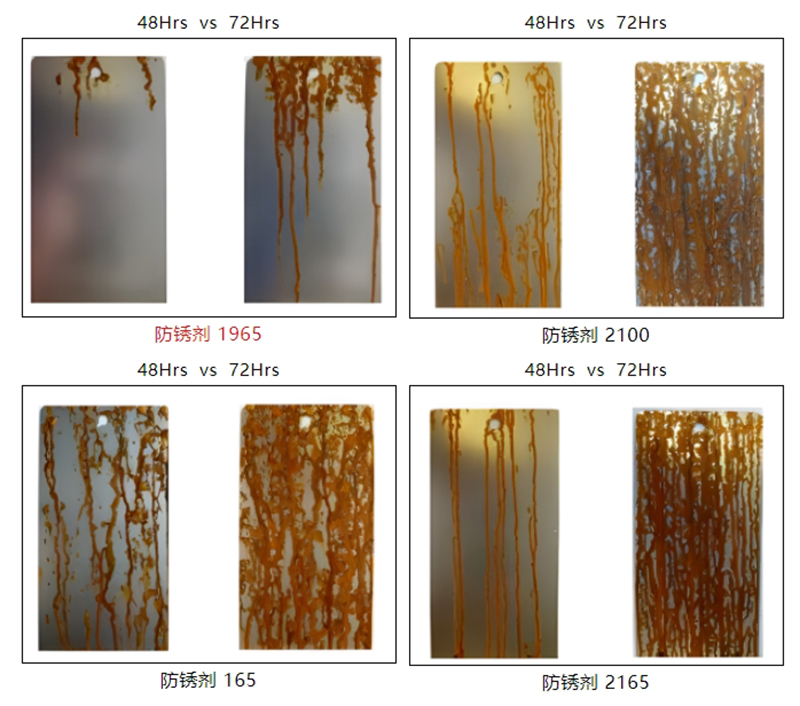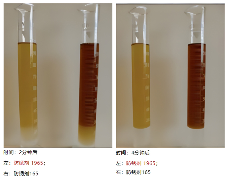 在抗乳化性(疏水性)以及抗腐蝕性,防銹劑MM-CI 1965媲美甚至超過目前市場上的主流產(chǎn)品:165、 19909產(chǎn)品。