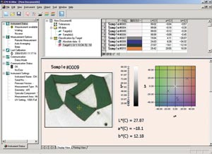 △ 作為世界上首款產(chǎn)品,SpectraMagic?NX色彩分析軟件允許您在測量數(shù)據(jù)中插入數(shù)字圖片,并精確標(biāo)記測量光點(diǎn),因此全面打開了客戶和供應(yīng)商之間的色彩交流新空間。 美能達(dá)色彩分析軟件數(shù)據(jù)列表視圖允許您使用復(fù)制和粘貼功能快速導(dǎo)出測量數(shù)據(jù)為Excel格式。 可使用“拖放”方式將任何圖形復(fù)制到電子表單上。 可自定義報(bào)告,以滿足終端用戶需求的格式顯示色彩數(shù)據(jù)。 另外,SpectraMagic?NX可在局域網(wǎng)(LAN)內(nèi)共享數(shù)據(jù),并可在Windows 98, SE, NT4, 2000 Professional 和 XP Professional系統(tǒng)下進(jìn)行操作。