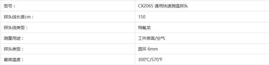 CX2065 通用快速測溫探頭是圓環(huán)設計,可以測量工件表面或者空氣的溫度。